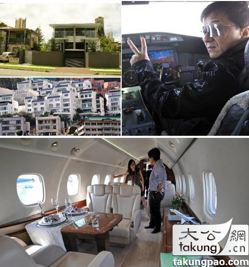成龍不避忌,講自己年少無知的荒唐事,幾十年前曾經試過每日帶五、六萬現金,看到什麼都想要,曾有一日買七隻鑽石表的紀錄。據悉,成龍的這架私人飛機是由巴西航空工業公司出產的“巴航萊格賽650”(Embraer Legacy 650)型噴氣式公務機,設計乘載13名乘客,價值近2億元人民幣。更愛豪車、豪宅。超級豪宅華麗輝煌堪比宮殿,房車內景奢華大氣。
